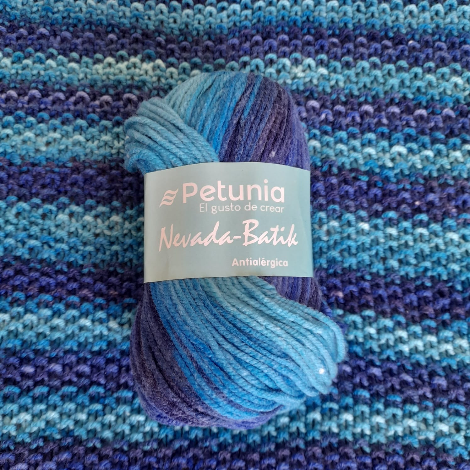 Lana teñida en batik, rendidora, suave y antialérgica. Para todo tipo de tejidos.